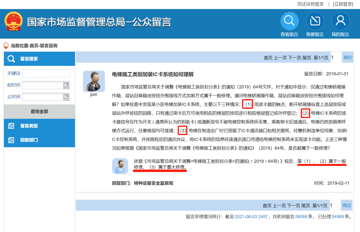 2、國(guó)家市場(chǎng)監(jiān)督管理總局回復(fù)加裝梯控哪種是一般修理和重大修理